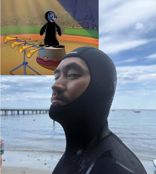 ,哈哈,有趣,这张照片真的很灵魂,袁弘这一身装扮,是要打算潜水了吗?和旁边的汤姆猫果然很相似,生活除了工作,还是要享受一下个人的生活的!
